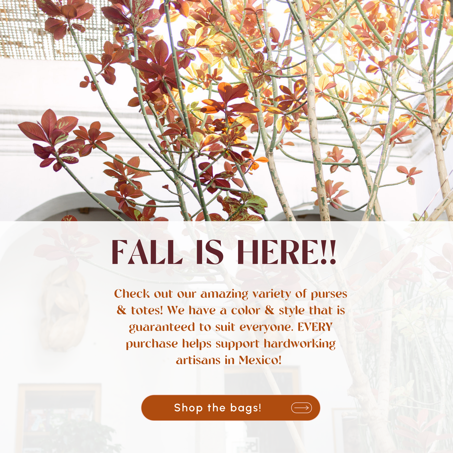 Our unique line of bags are all handmade in Mexico by our amazing artisans. We focus on sustainability and providing fair and equitable wages.