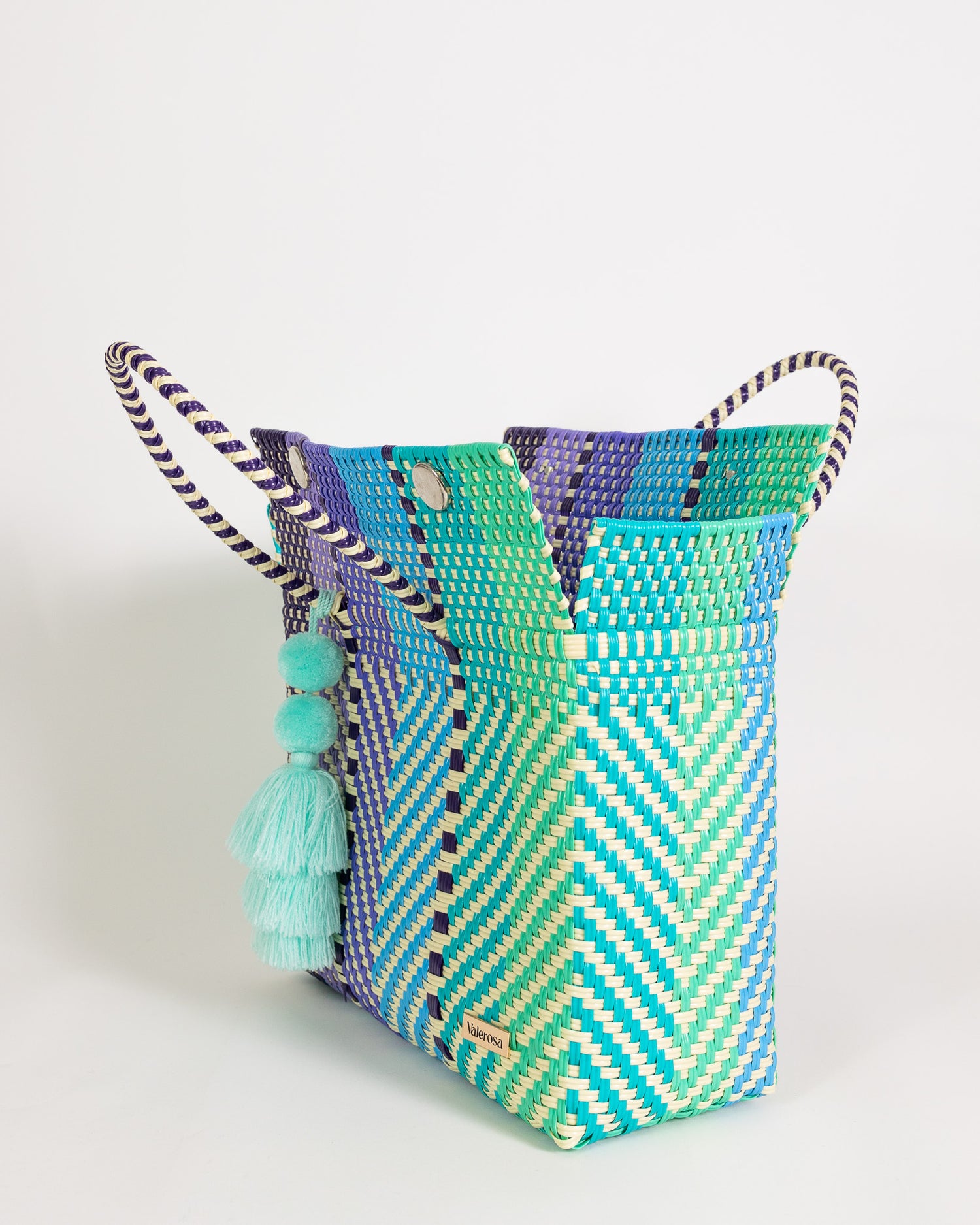 Our totes are colorful, hand-woven Mexican baskets that bring a bright authentic Mexican style to any occasion. Día means "day" in Spanish and this bag is perfect for daily use. The Día bag tote is enough for all your essentials (think lunchbox, laptops, file folders, etc.). Made with durable plastic that lasts a lifetime.