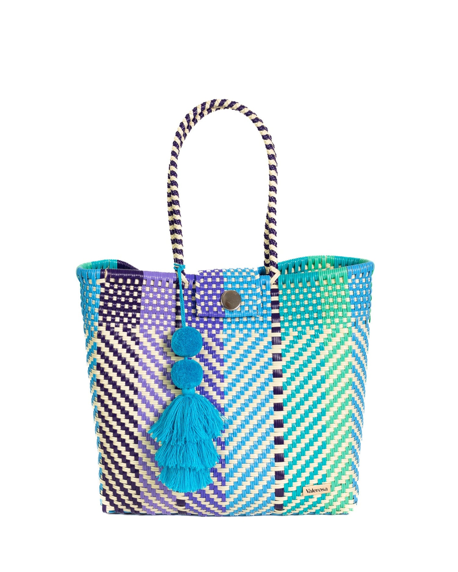Our bags are colorful, hand-woven Mexican baskets that bring a bright authentic Mexican style to any occasion. This bag is called "Hombro" which means shoulder in Spanish. This is bag is similar to a purse and is big enough for all your essentials (lunch, books, mobile phone, a small purse, keys, etc.). Our bags are made with durable plastic that lasts a lifetime.
