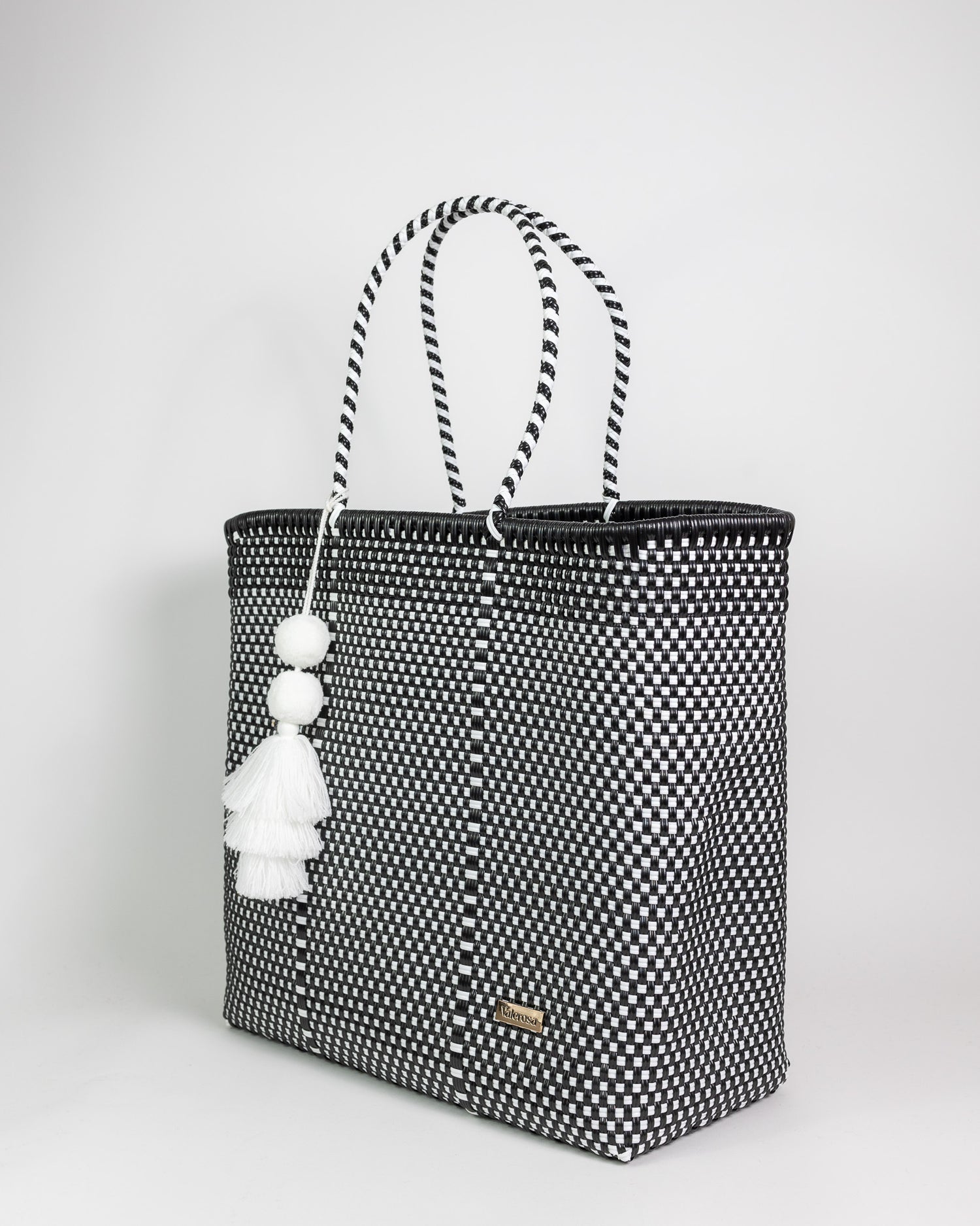 Our totes are colorful, hand-woven Mexican baskets that bring a bright, authentic style to any occasion. This bag is one of our biggest bags. Playera means "beach" in Spanish and this bag is perfect for beach/pool days. Large enough told hold 4 rolled towels, water bottle, book, phone and more! Our bags are made with durable plastic that lasts a lifetime.