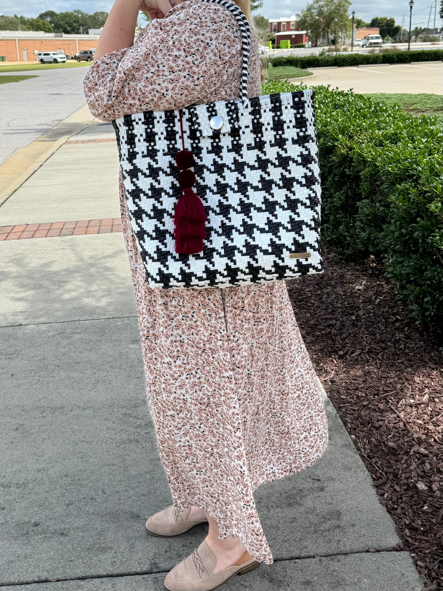 Black and White Houndstooth Hombro Tote
