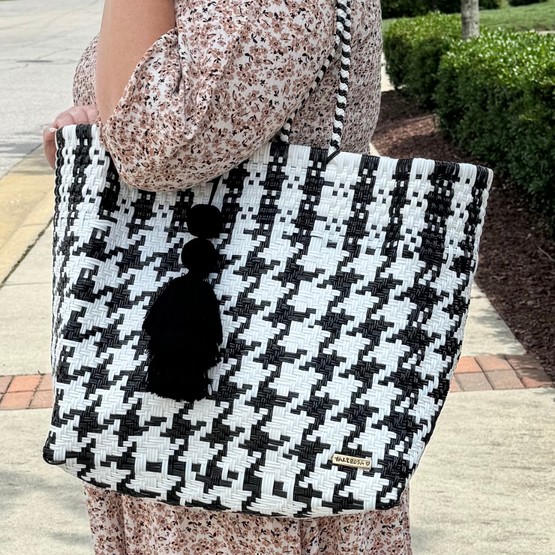 Black and White Houndstooth is for the lovers of classic elegance with a modern twist. Featuring a bold houndstooth-inspired weave in black and white, this design is striking yet timeless. Finished with chic black pom-pom, it’s a sophisticated piece that elevates any look with effortless style.