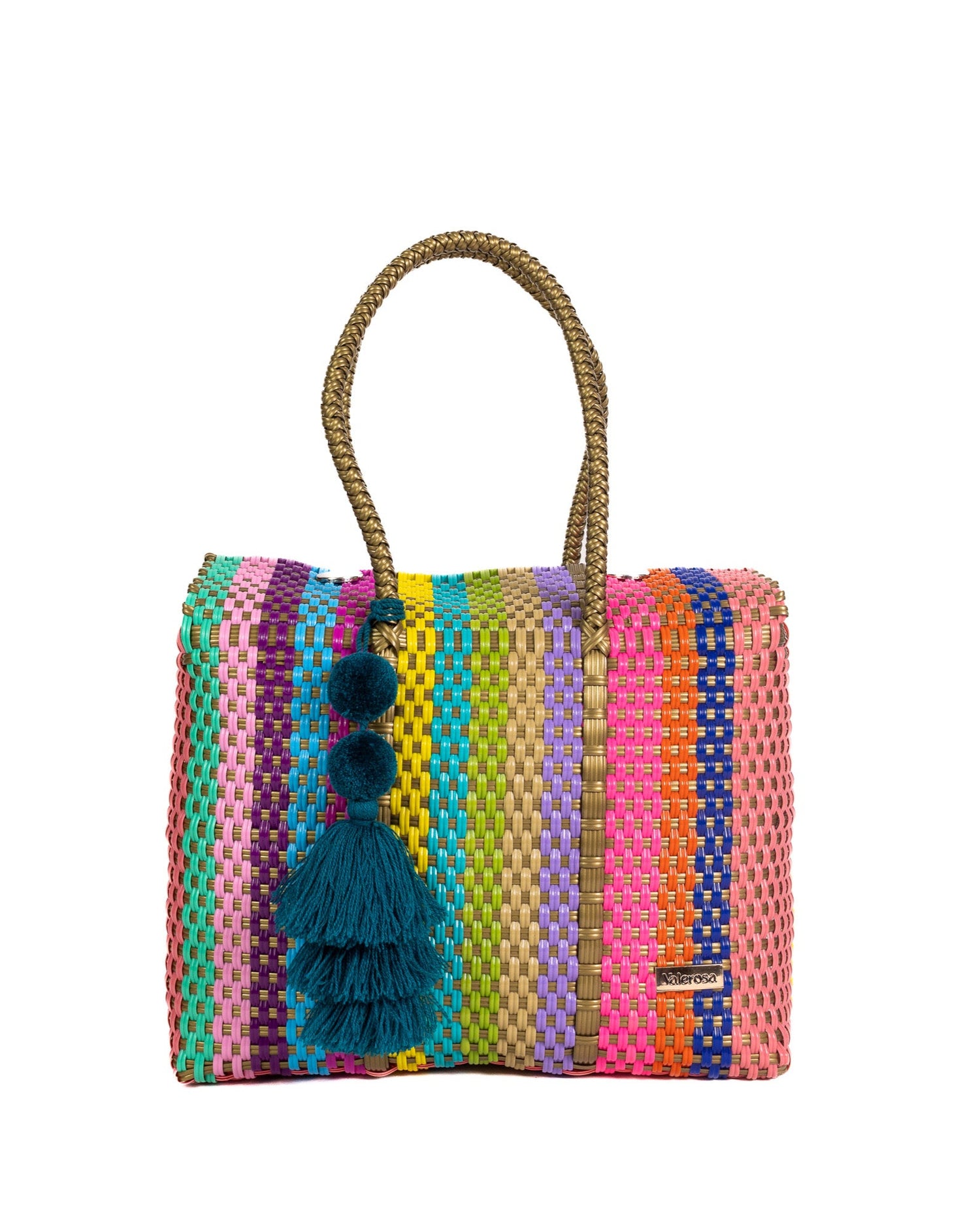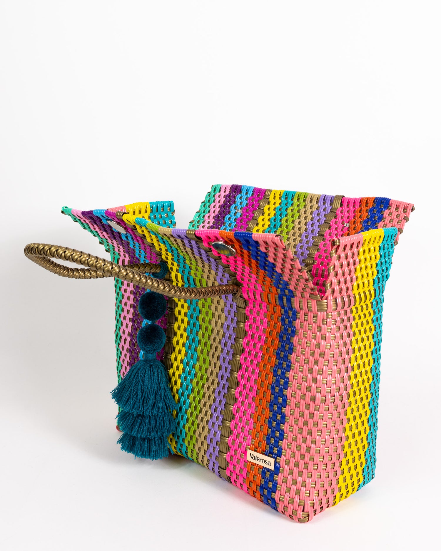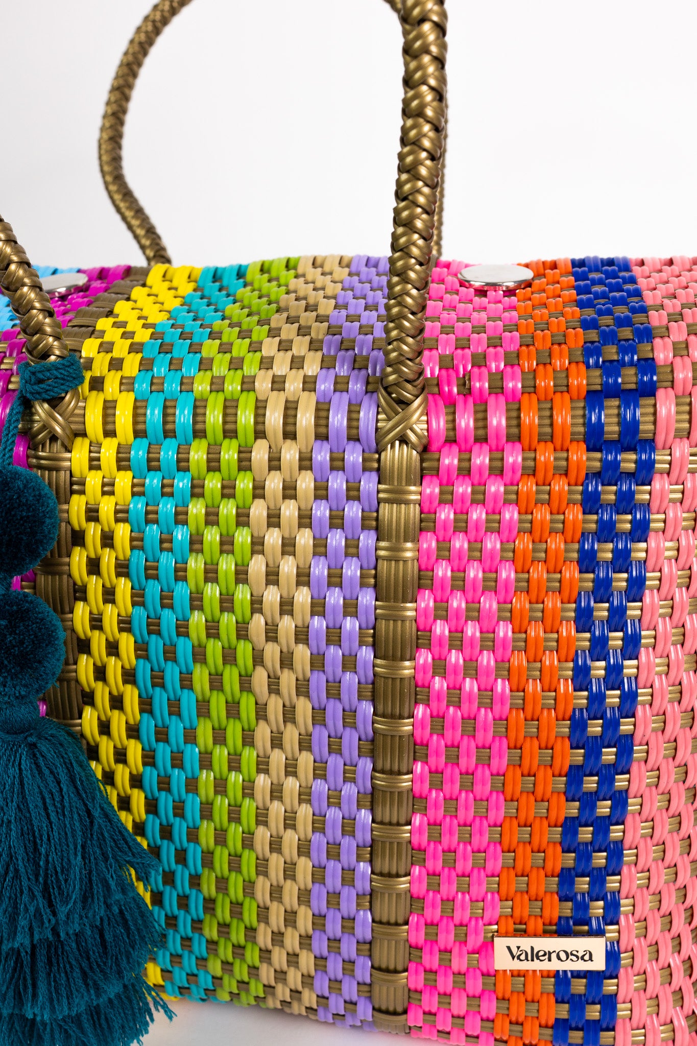 Our totes are colorful, hand-woven Mexican baskets that bring a bright authentic Mexican style to any occasion. Día means "day" in Spanish and this bag is perfect for daily use. The Día bag tote is enough for all your essentials (think lunchbox, laptops, file folders, etc.). Made with durable plastic that lasts a lifetime.