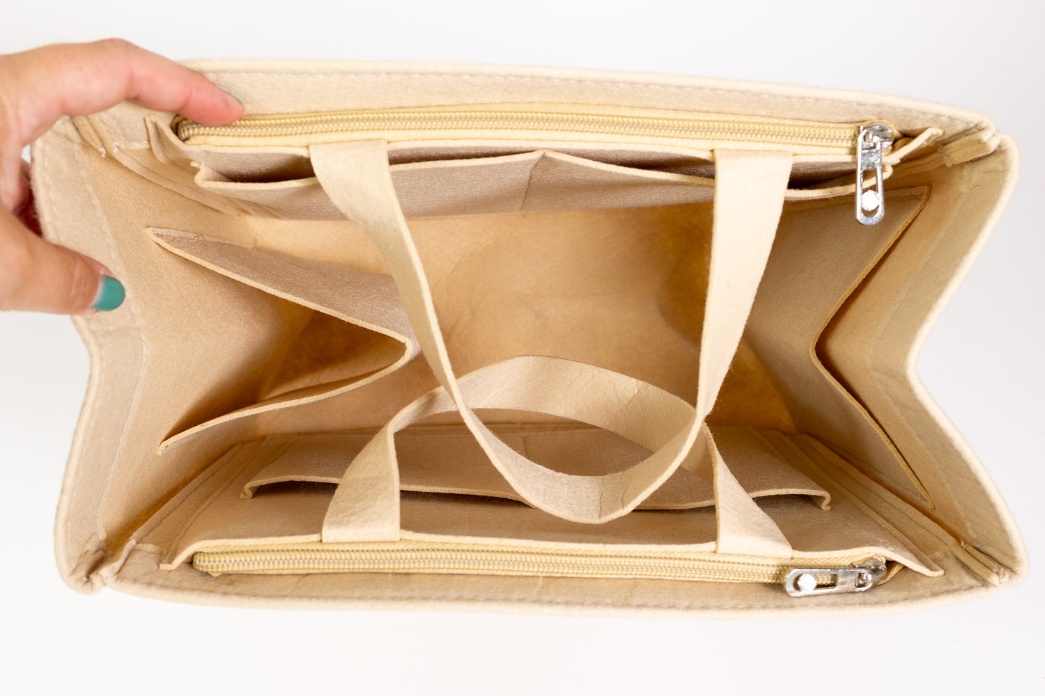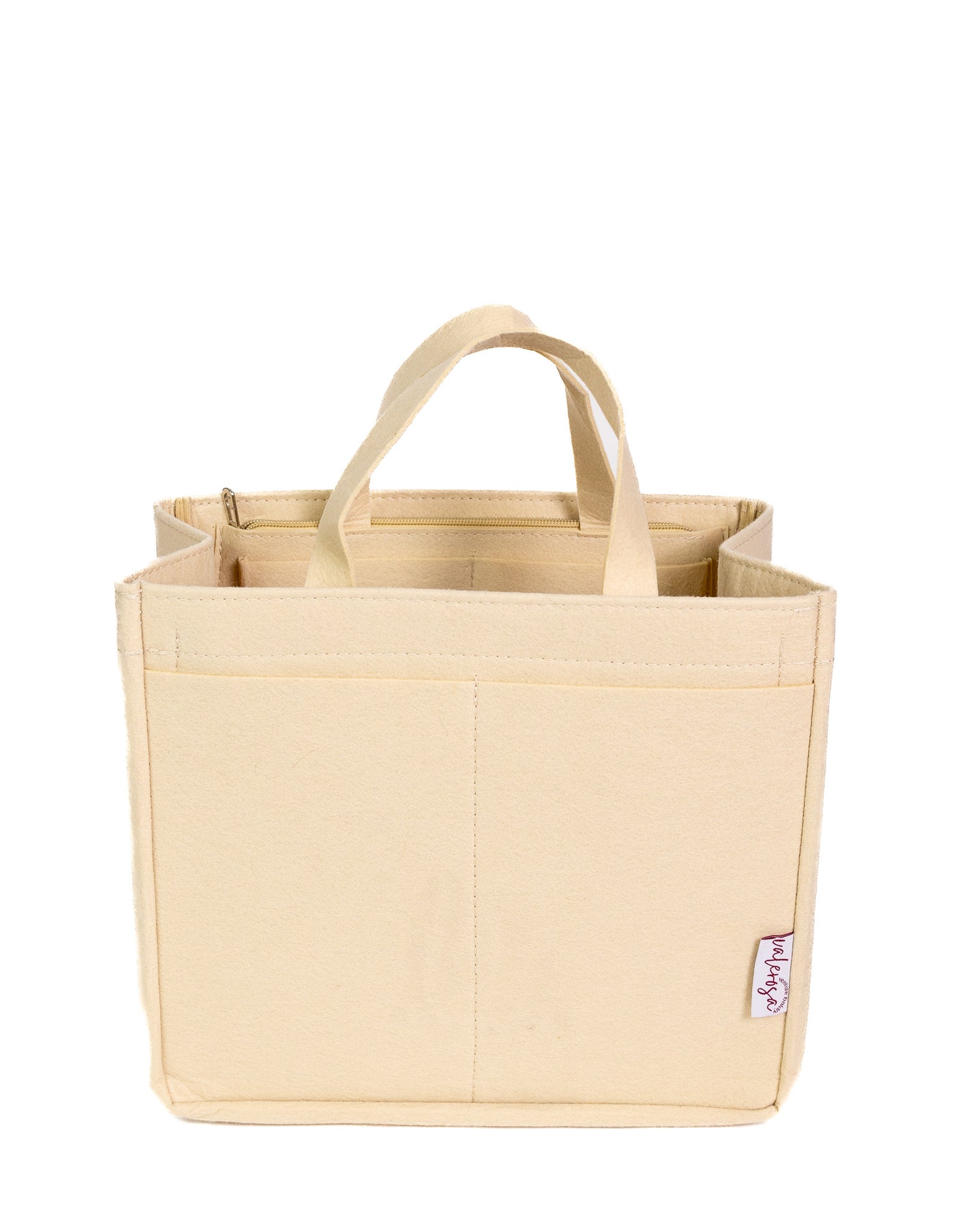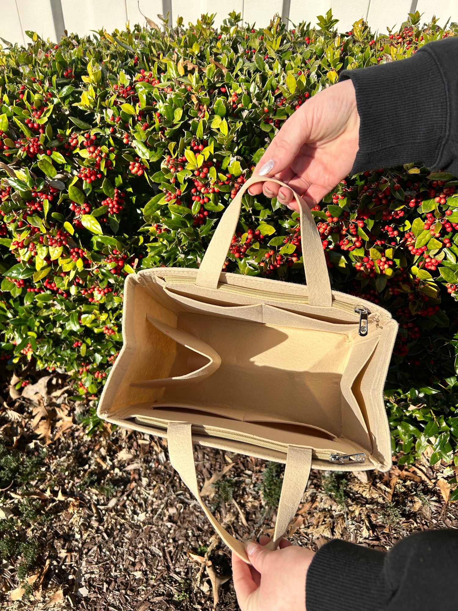 The perfect accessory for your tote bag! These durable felt organizers pair perfectly with the Hombro, Playera, Jumbo and Duffel to keep all your personalized items organized. Featuring 2 zipper pockets, 4 internal pockets, 2 exterior pockets, and two large side pockets including one designed for water bottles including your Stanley tumbler!