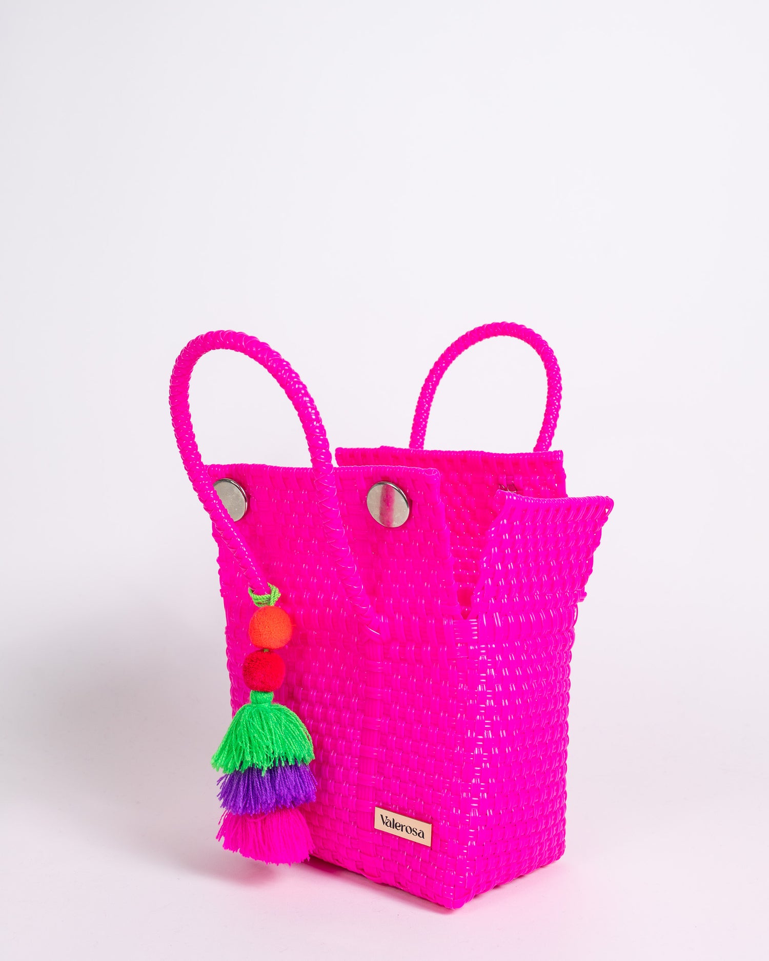 Our Mini purse is perfect for all those small, important things in your life. This hand-woven purse brings bright, authentic style to any occasion. This tote is small and has room for your mobile phone, keys, and your credit cards and ID. Our bags are made with durable plastic that lasts a lifetime.