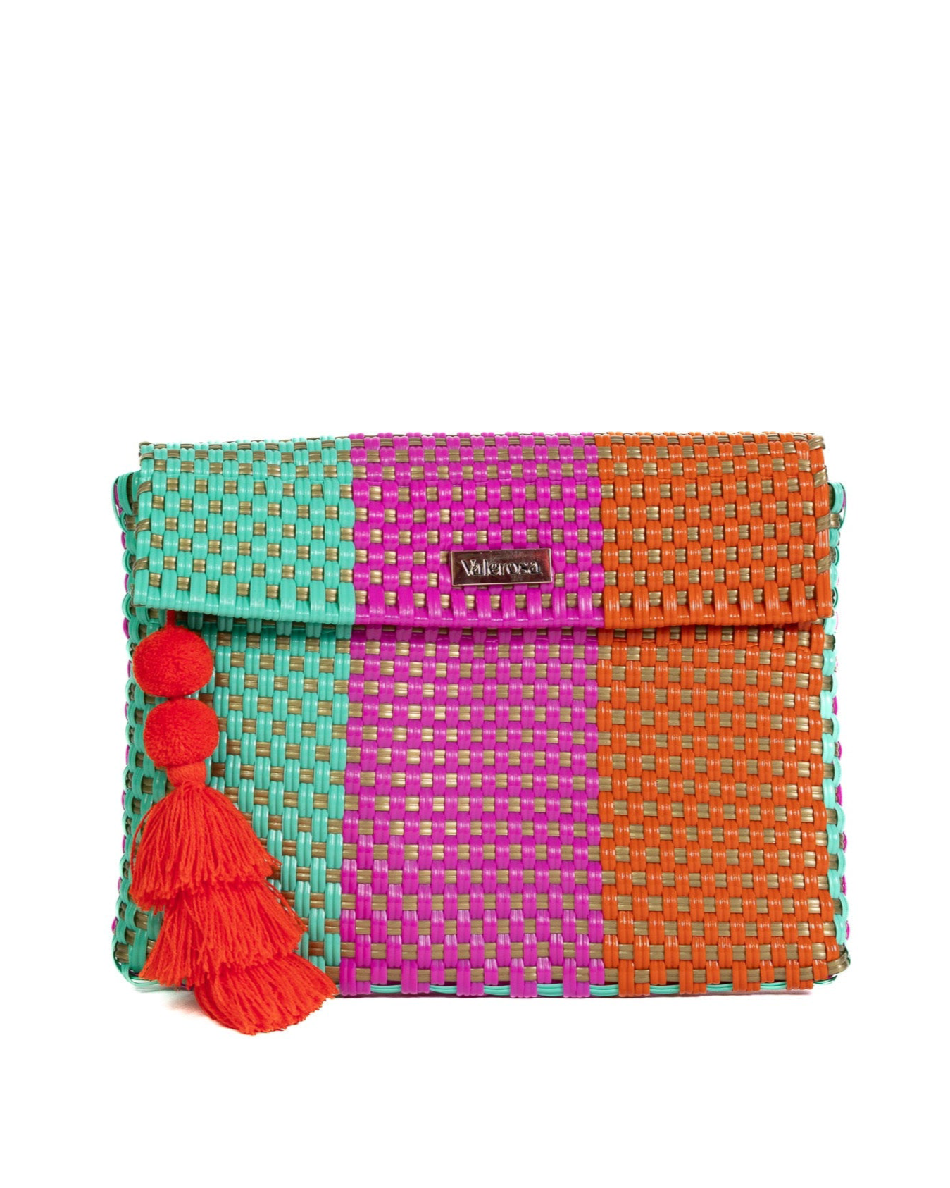 Miami is for the ones who live life like it’s always summer. Featuring bold shades of orange, hot pink, and aqua woven with shimmering gold, this playful pattern brings instant sunshine to any day. Finished with a bright pom-pom, Miami is the ultimate tropical statement bag that radiates fun, color, and joy all year round.