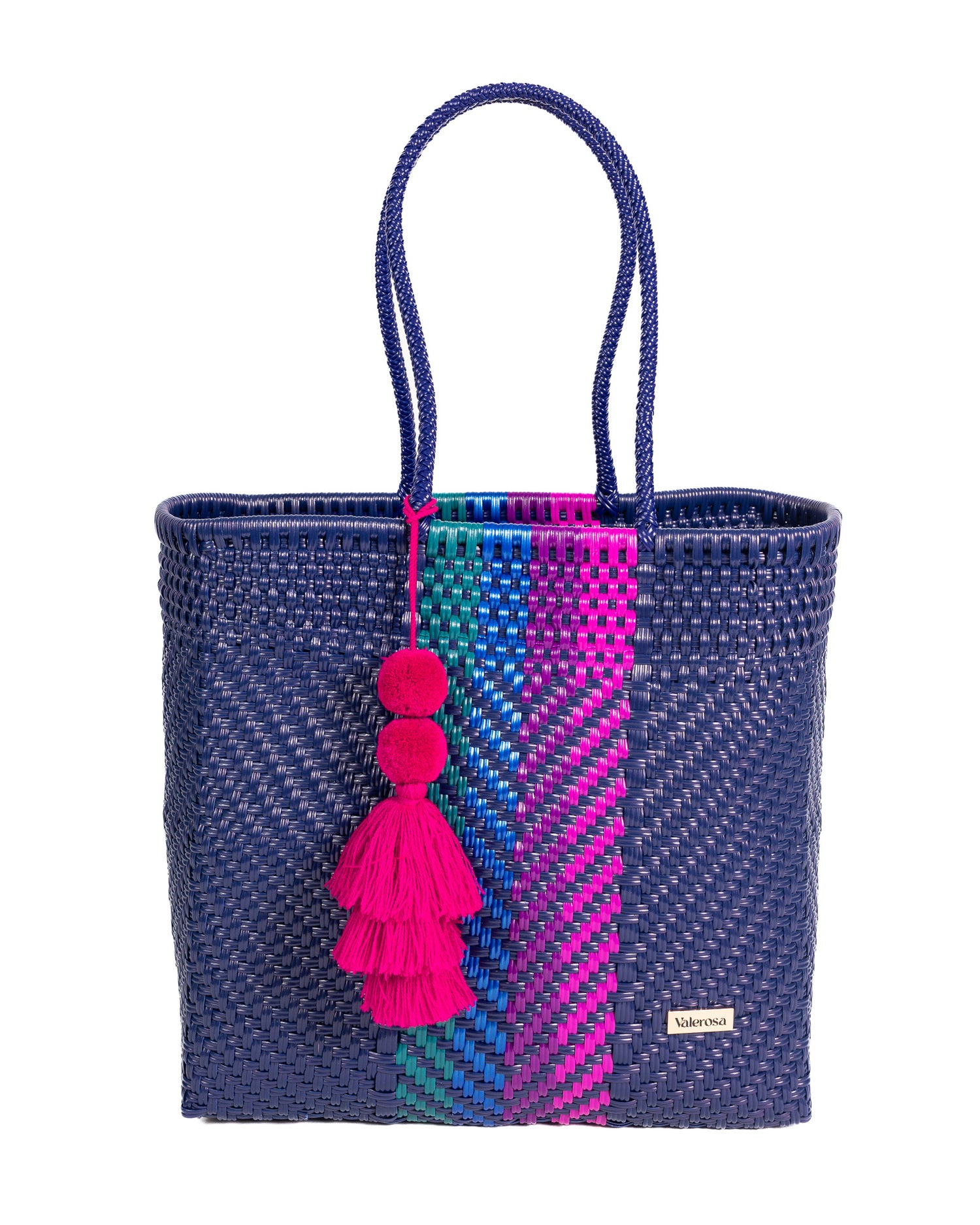 Midnight Jewels is for those who love deep tones with a vibrant edge. Featuring a rich navy base accented by jewel-toned stripes of magenta, turquoise, and violet in a chevron weave, this design is bold yet refined. Finished with bright magenta pom-pom, it’s a striking piece that shines day or night.