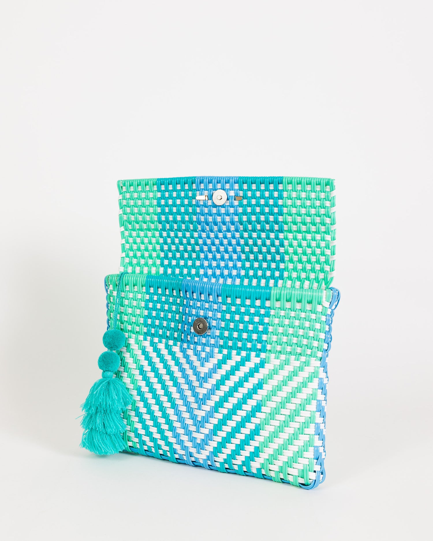 Ocean Blvd is for the beach lovers and sun chasers who feel most at home by the sea. Featuring refreshing shades of aqua, turquoise, and white woven into wave-like patterns, this bag is as breezy as a coastal escape. Finished with ocean-blue or white pom-pom, Ocean Blvd is the ultimate seaside companion, bringing laid-back elegance to every adventure.