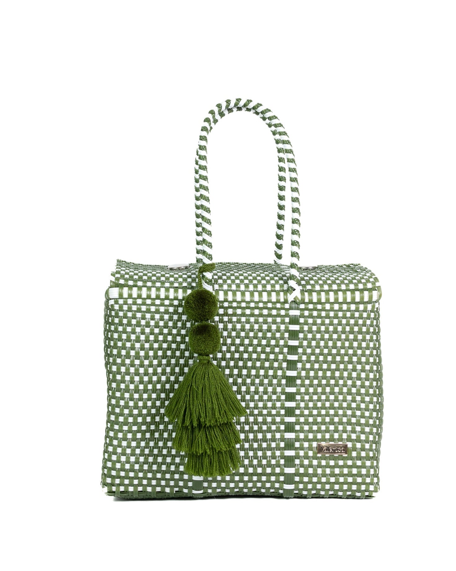 Our totes are colorful, hand-woven Mexican baskets that bring a bright authentic Mexican style to any occasion. Día means "day" in Spanish and this bag is perfect for daily use. The Día bag tote is enough for all your essentials (think lunchbox, laptops, file folders, etc.). Made with durable plastic that lasts a lifetime.