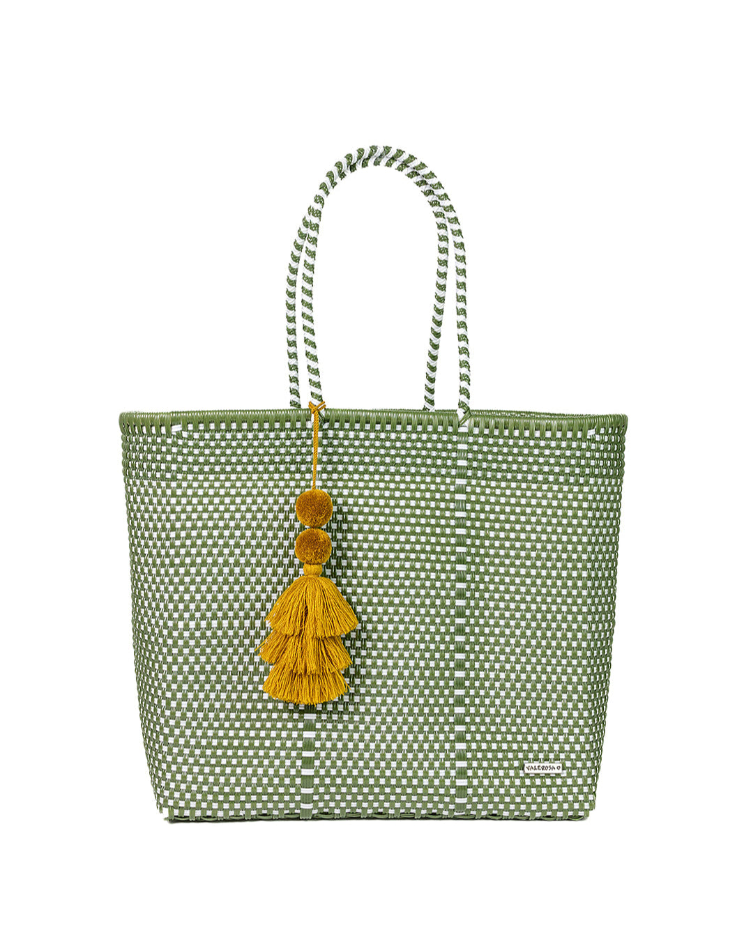 Our totes are colorful, hand-woven Mexican baskets that bring a bright, authentic style to any occasion. This bag is one of our biggest bags. Playera means "beach" in Spanish and this bag is perfect for beach/pool days. Large enough told hold 4 rolled towels, water bottle, book, phone and more! Our bags are made with durable plastic that lasts a lifetime.