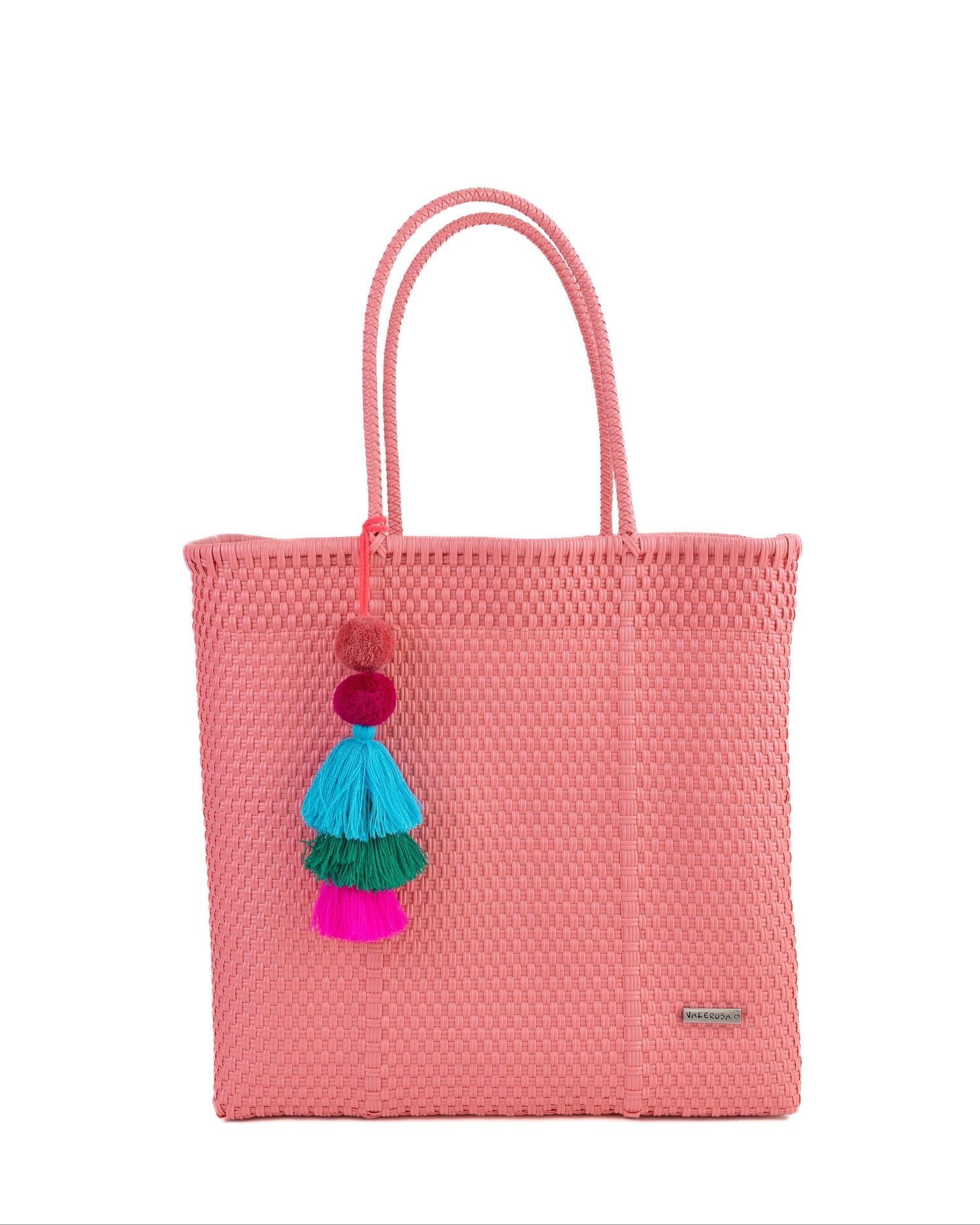 Our biggest tote! Check the dimensions before you buy! Our totes are colorful, hand-woven Mexican baskets that bring a bright, authentic style to any occasion. This tote is big enough for a weekend away. Made with durable plastic that lasts a lifetime.