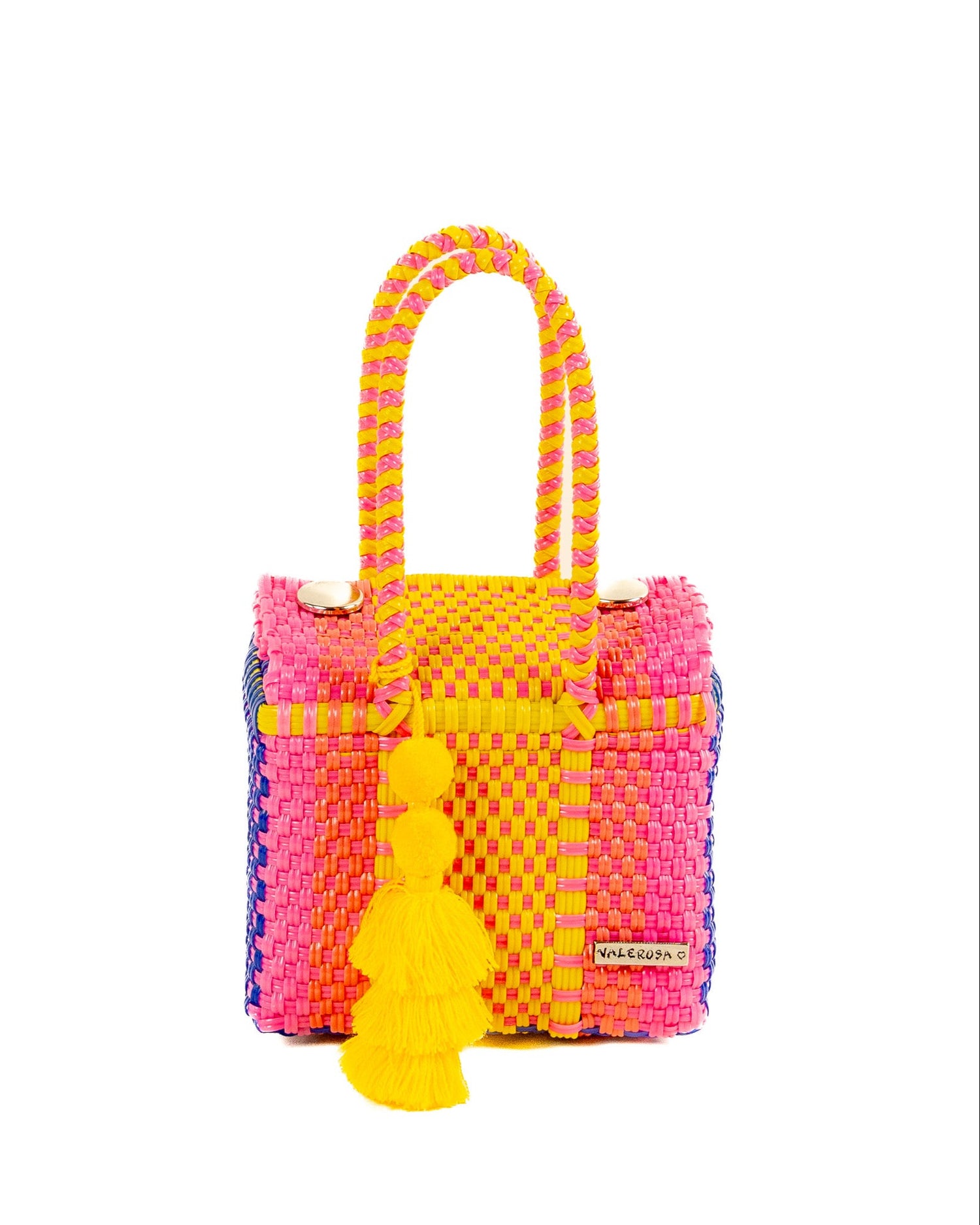 Sedona is for the vibrant spirits who shine as bright as the desert sun. Featuring bold fuchsia, sunshine yellow, and soft pink woven into a lively pattern, this bag bursts with playful energy. Accented with deep navy or yellow pom-pom, Sedona is the perfect mix of fiery color and chic contrast—made to turn every outing into a celebration.