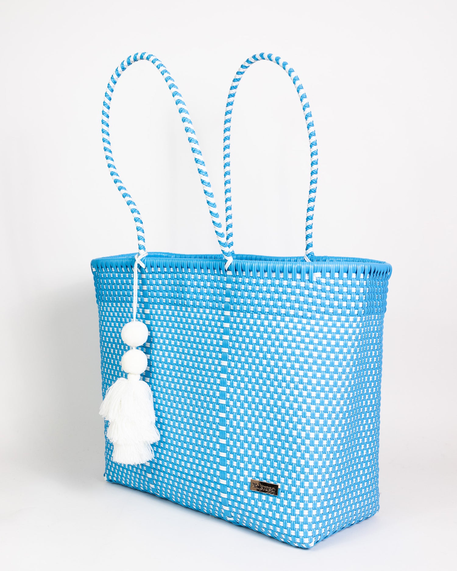 Our totes are colorful, hand-woven Mexican baskets that bring a bright, authentic style to any occasion. This bag is one of our biggest bags. Playera means "beach" in Spanish and this bag is perfect for beach/pool days. Large enough told hold 4 rolled towels, water bottle, book, phone and more! Our bags are made with durable plastic that lasts a lifetime.