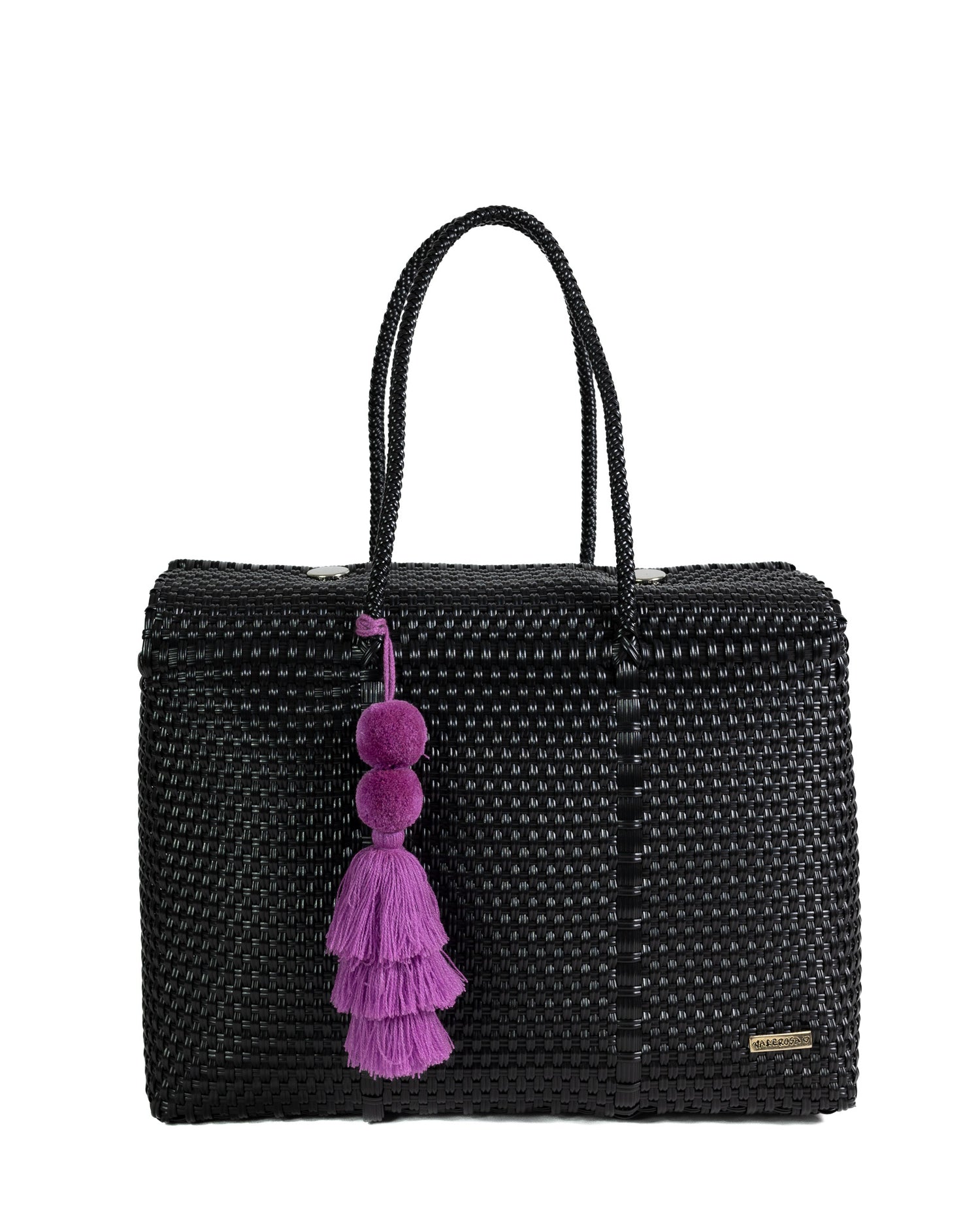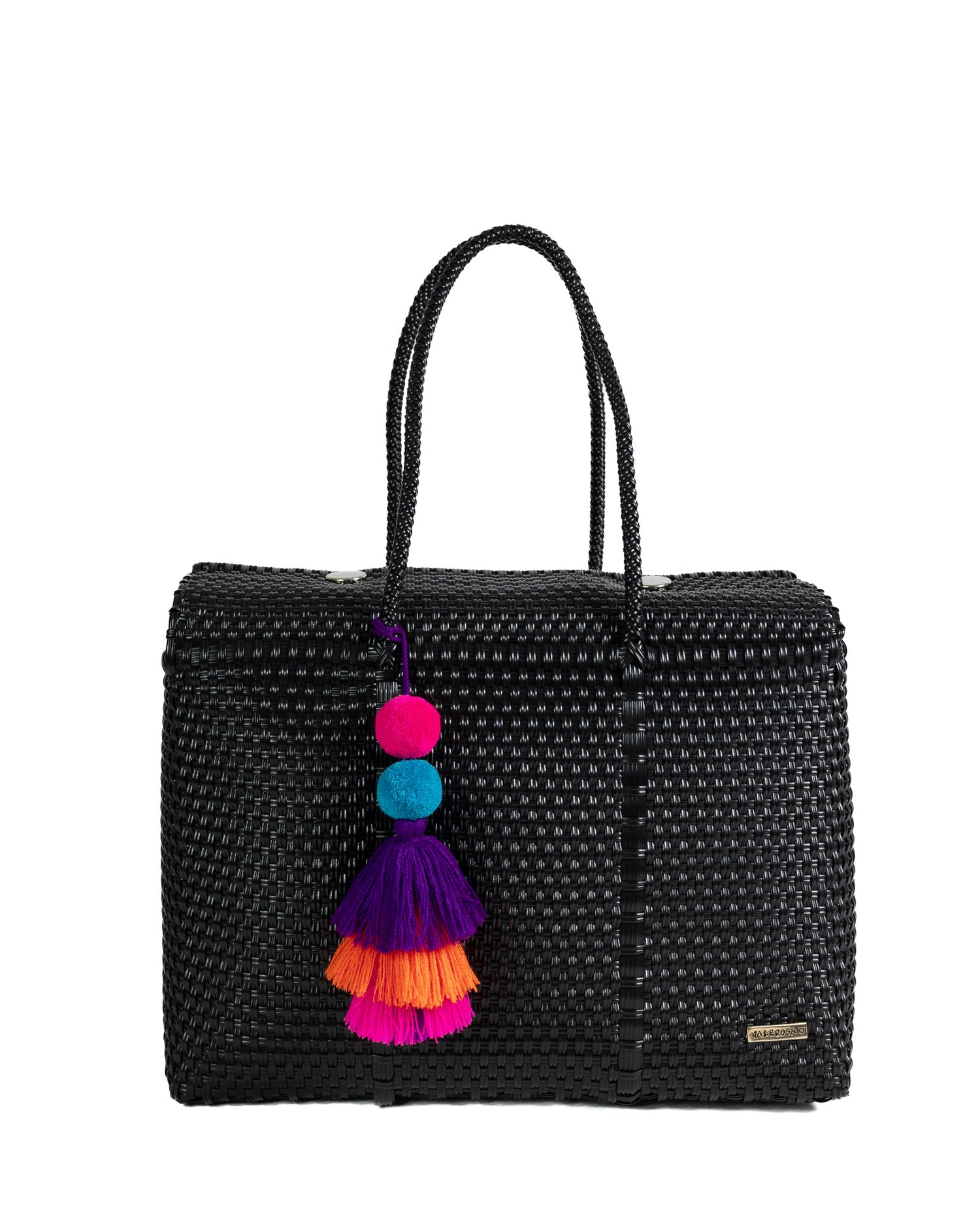 Solid Black is for the ones who embody timeless sophistication. Featuring a sleek all-black woven design that’s effortlessly chic, this bag is versatile enough for any occasion. Finished with bold purple pom-pom, it’s a classic piece that adds understated elegance to every look.