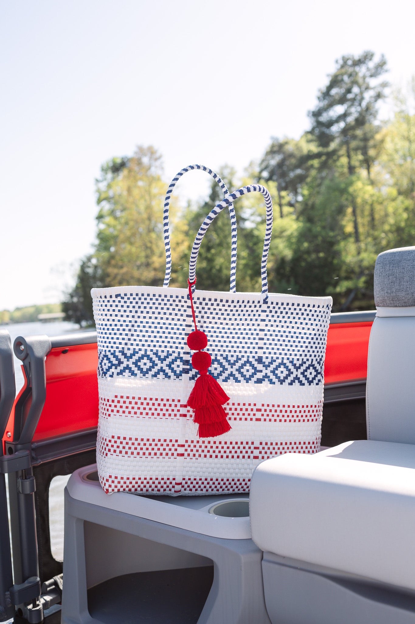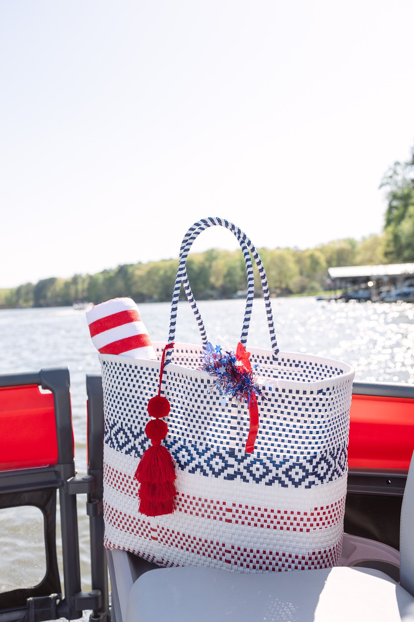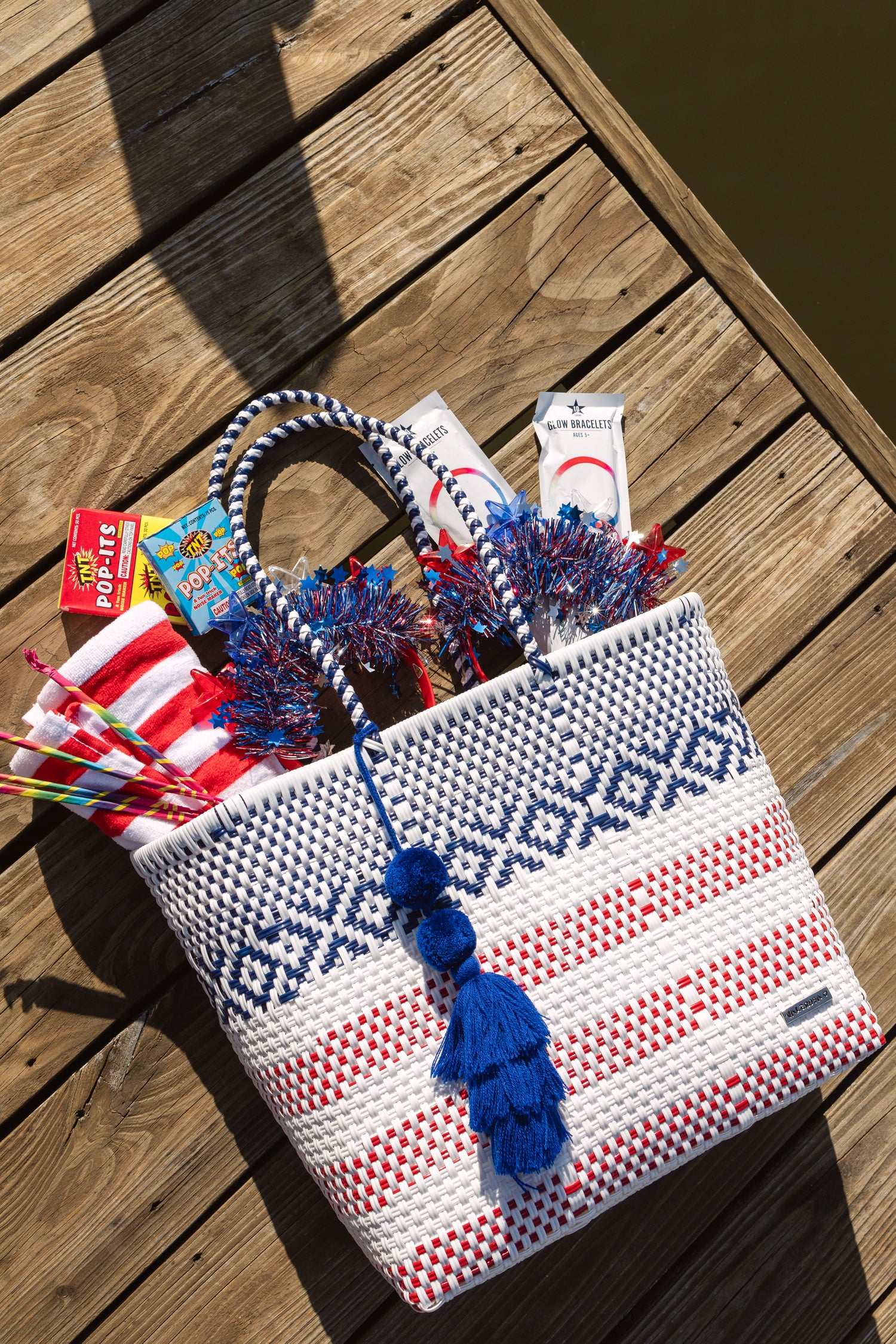 Stars and Stripes is for the spirited souls who love to celebrate red, white, and blue in style. Featuring bold navy, crisp white, and vibrant red woven into striking patterns, this bag radiates patriotic charm. Finished with classic navy or red pom-pom, Stars and Stripes is a festive statement piece perfect for summer outings, holidays, and year-round pride.