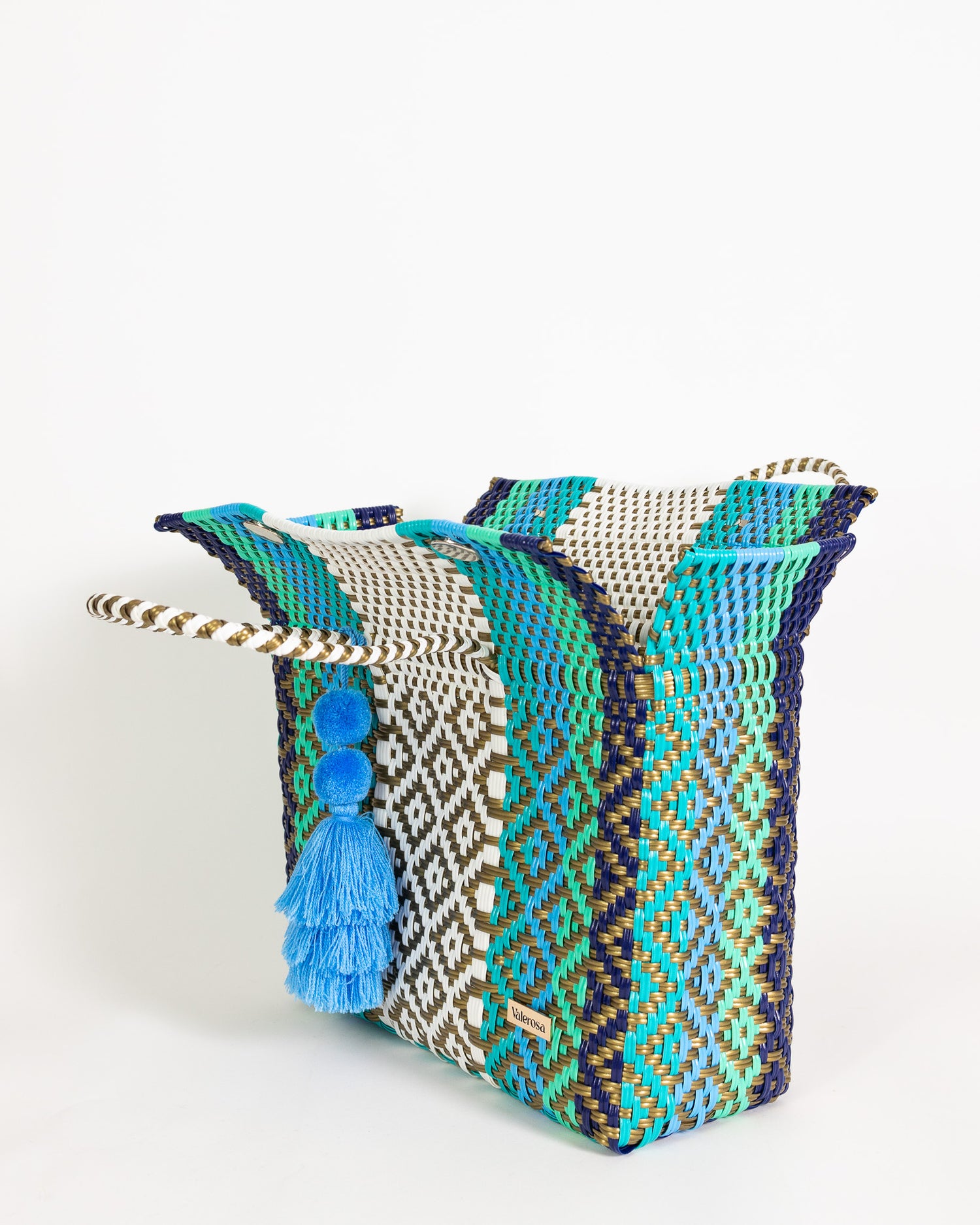 Our totes are colorful, hand-woven Mexican baskets that bring a bright authentic Mexican style to any occasion. Día means "day" in Spanish and this bag is perfect for daily use. The Día bag tote is enough for all your essentials (think lunchbox, laptops, file folders, etc.). Made with durable plastic that lasts a lifetime.